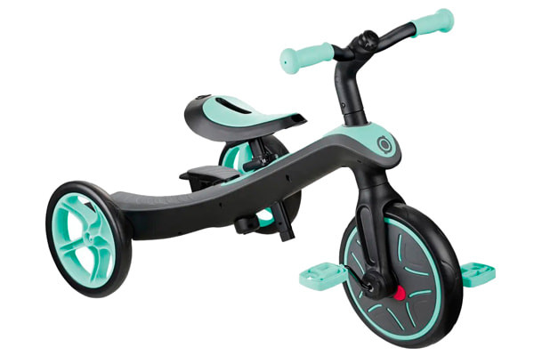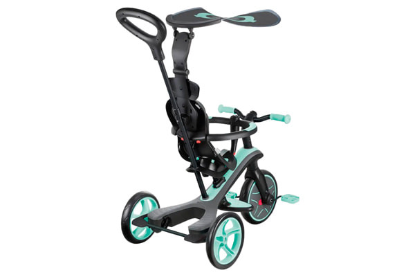 Dit multifunctionele voertuig van Globber groeit in vier stadia met je kind mee! Vanaf 10 maanden tot zo'n 5 jaar. Als driewieler met alle hulpstukken erop en een hoge zitting met veiligheidsgordel. De hulpstukken kunnen langzaam verwijderd worden, maar je kunt je kind helpen sturen met de duwstang. Is hij of zij er klaar voor? Dan kan de Explorer als losstaande driewieler gebruikt worden. In het laatste stadium kan hij worden omgezet naar een tweewieler loopfiets. Voor alle aanpassingen is geen gereedschap nodig! Met inschakelbaar vrijloopsysteem en lekvrije banden.